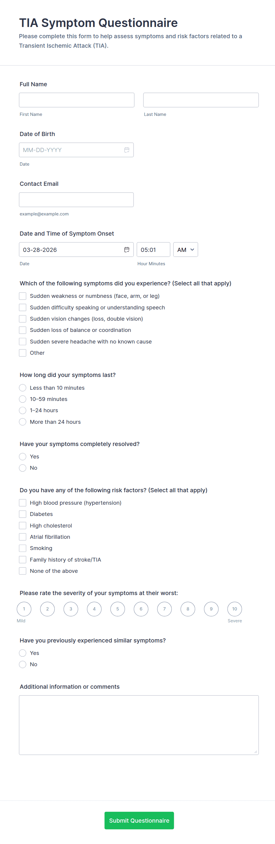 • For health risk assessments, include checkboxes or multiple-choice questions about lifestyle, family history, and specific risk factors.