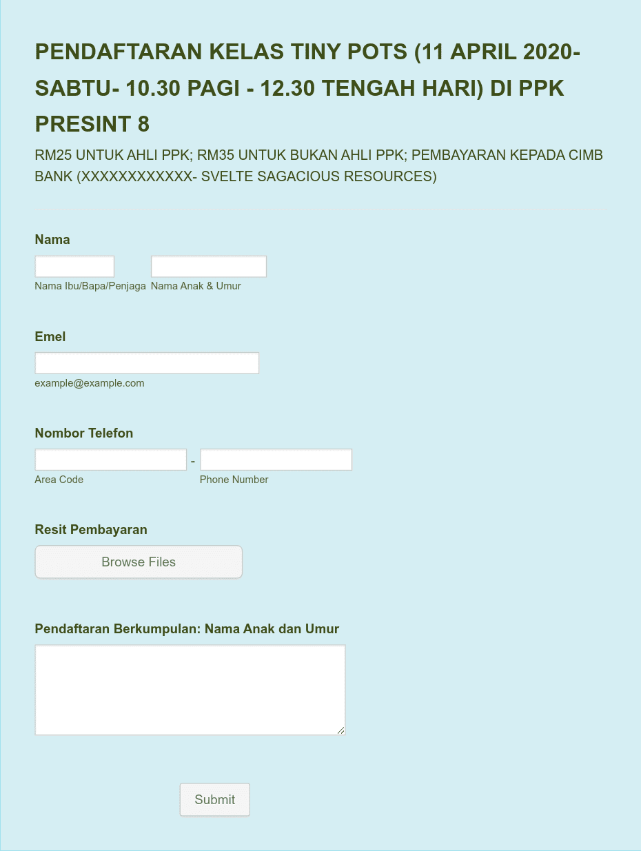 - Event Booking Forms: Often require attendee details, ticket type selection, and payment integration.