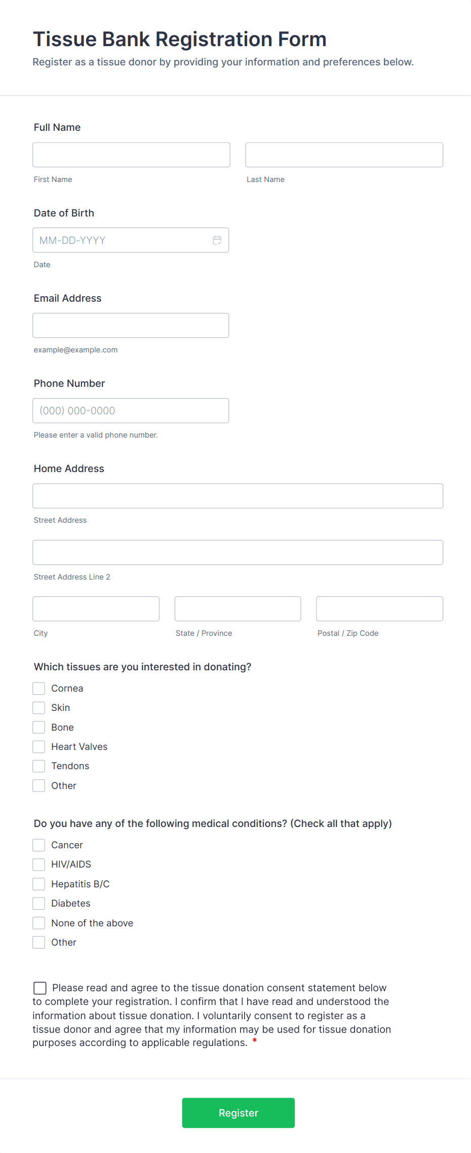 By following these steps, you can create a secure, user-friendly Patient Registration Form that streamlines your intake process, reduces errors, and enhances the patient experience—whether in-person or online.