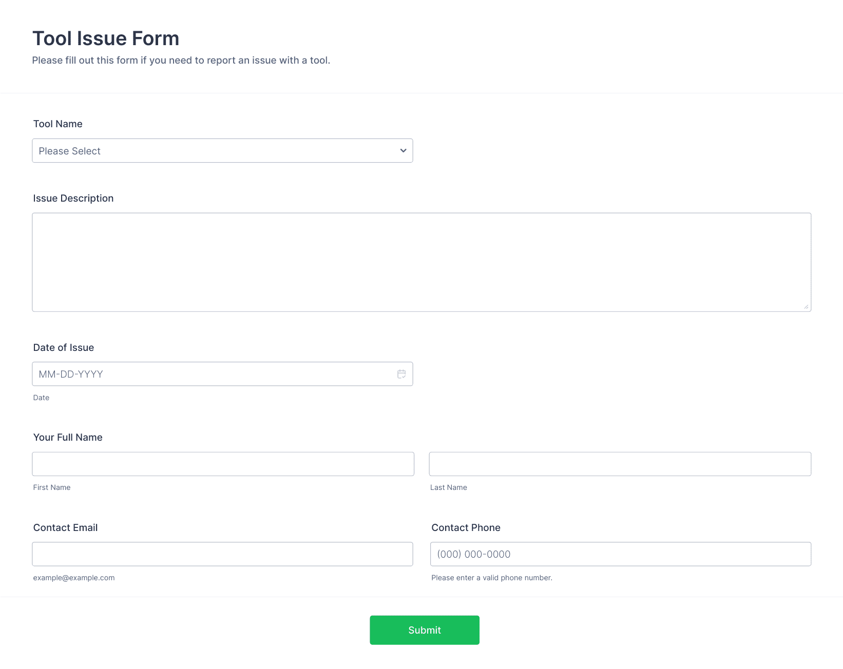 • For business reports: Include fields for dates, metrics, comments, and file uploads.