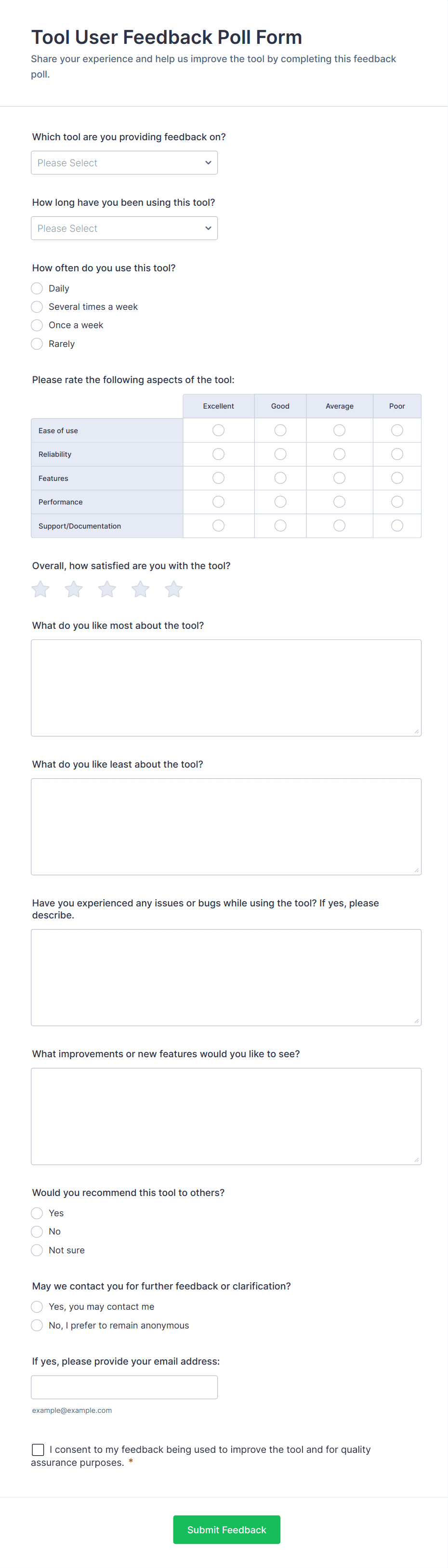 • If anonymity is important (e.g., for employee polls), ensure identifying fields are optional or omitted.