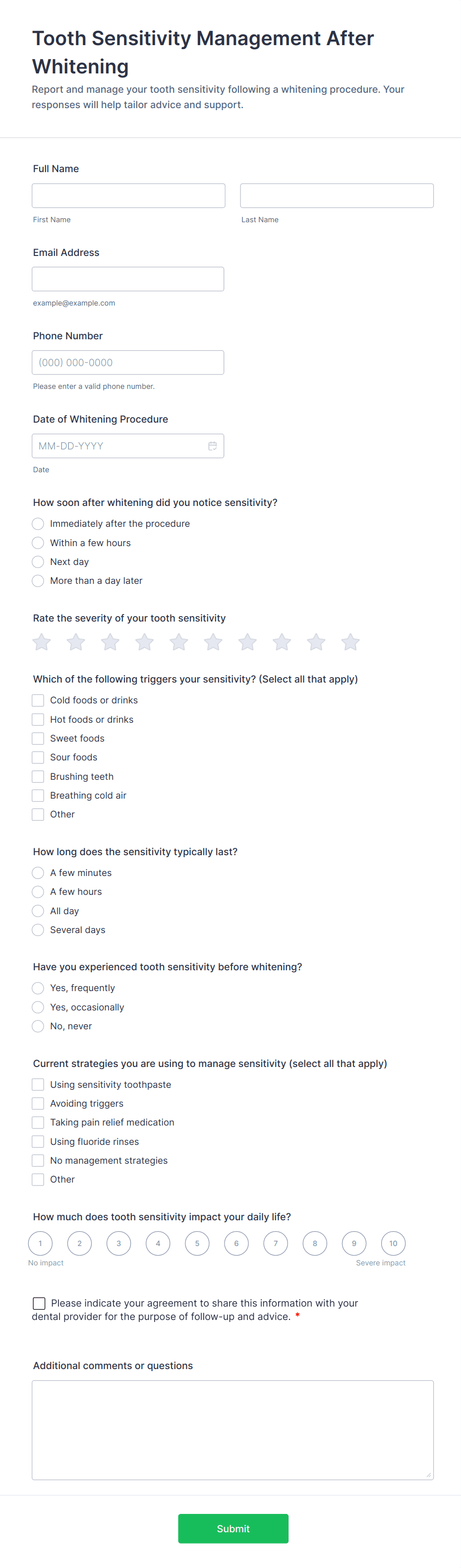 • Distribute the form via email, SMS, your website, or patient portals.