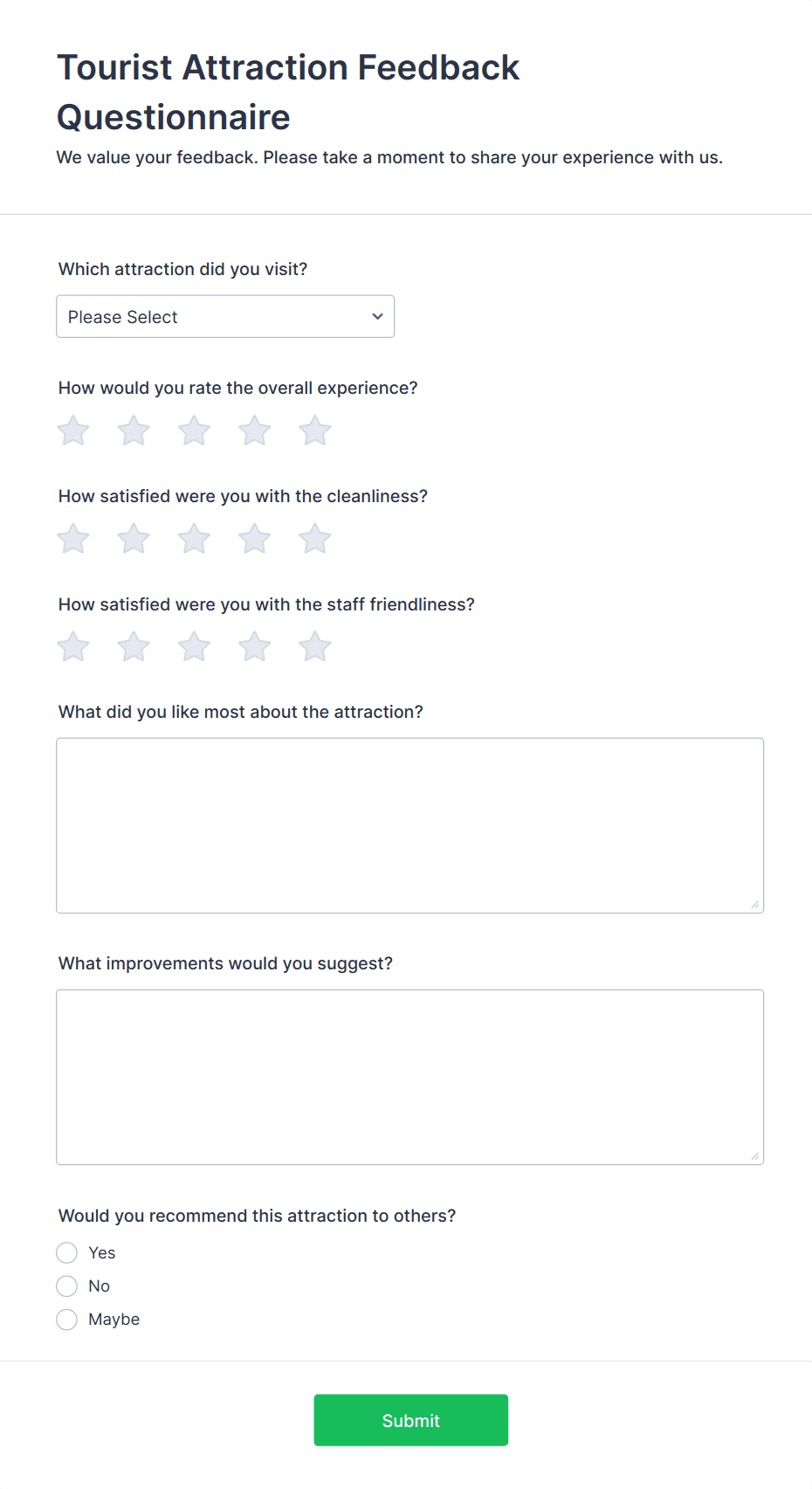 A guest feedback survey is a questionnaire that allows hotel owners to collect feedback from their hotel guests about their stay.