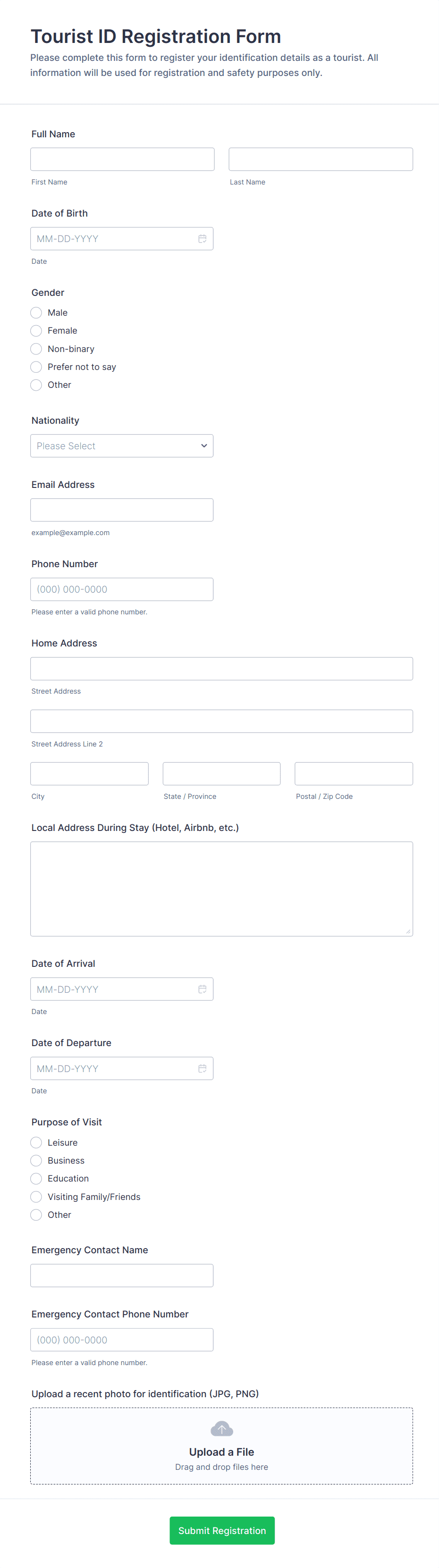 - Hotel Guest Registration: Often requires ID verification, check-in/check-out dates, and emergency contact details.