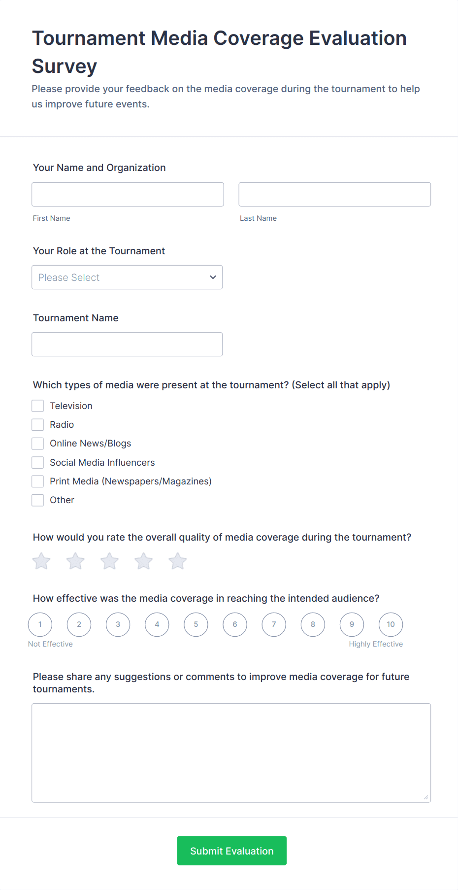 By following these steps, you can create a comprehensive Event Evaluation Form that captures valuable feedback, helping you deliver better events every time.