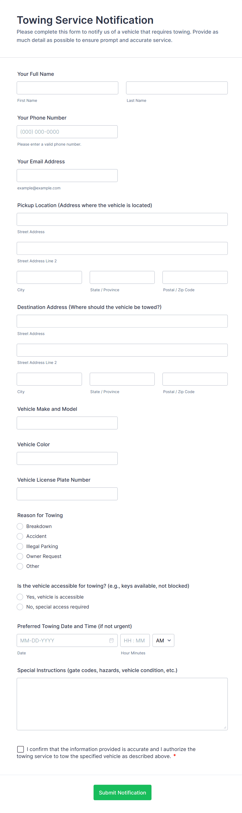 - Dropdowns or multiple-choice fields for vehicle type or service options.