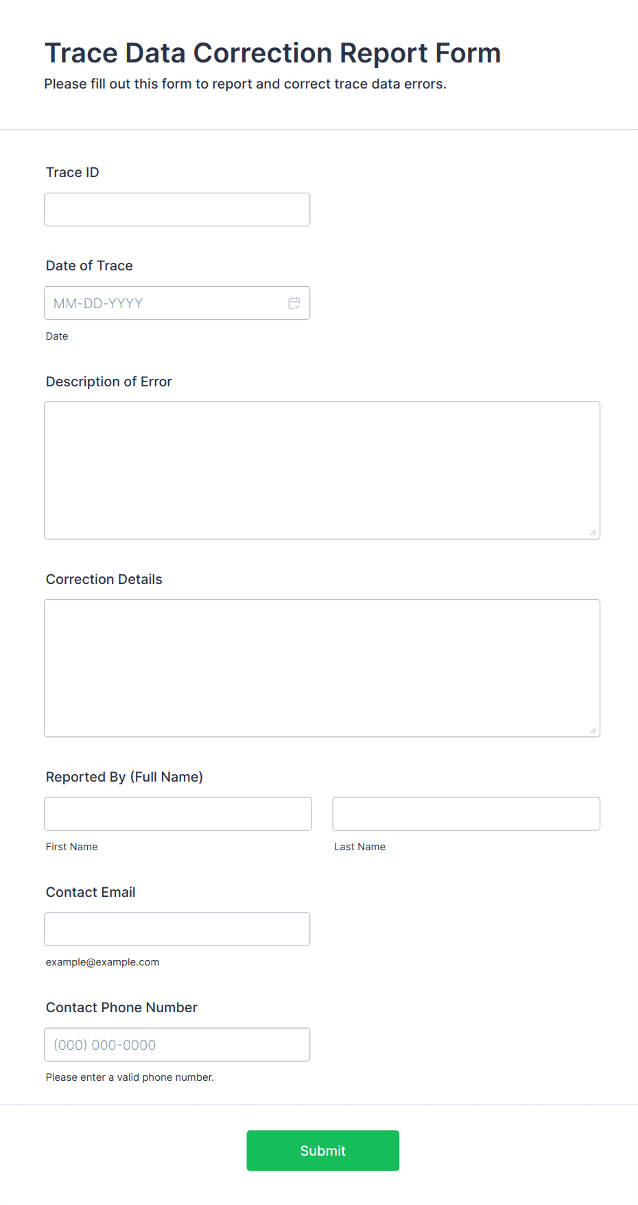 • For business reports: Include fields for dates, metrics, comments, and file uploads.