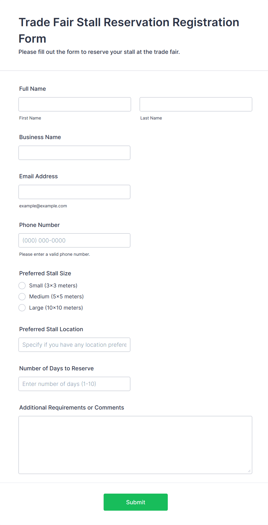 - Content and fields vary based on event type: For example, a conference form may include session selection and company details, while a wedding RSVP form might ask for meal preferences and plus-one information.