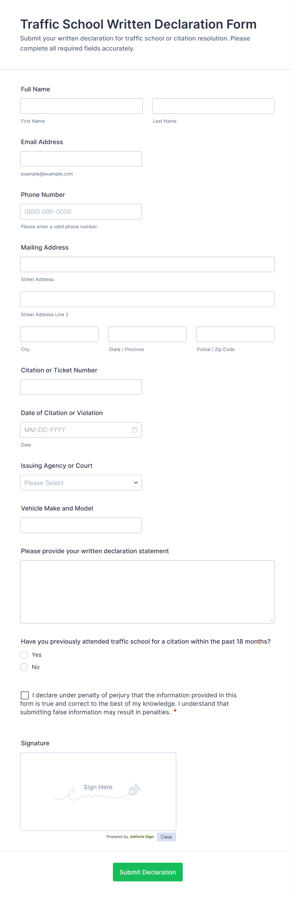 Creating a declaration form with Jotform is a straightforward process that allows you to collect official statements, consents, or disclosures efficiently. Whether you need a health declaration, legal acknowledgment, or parental consent, Jotform’s flexible platform ensures your form meets your exact requirements. Here’s a step-by-step guide to building a declaration form for any use case: