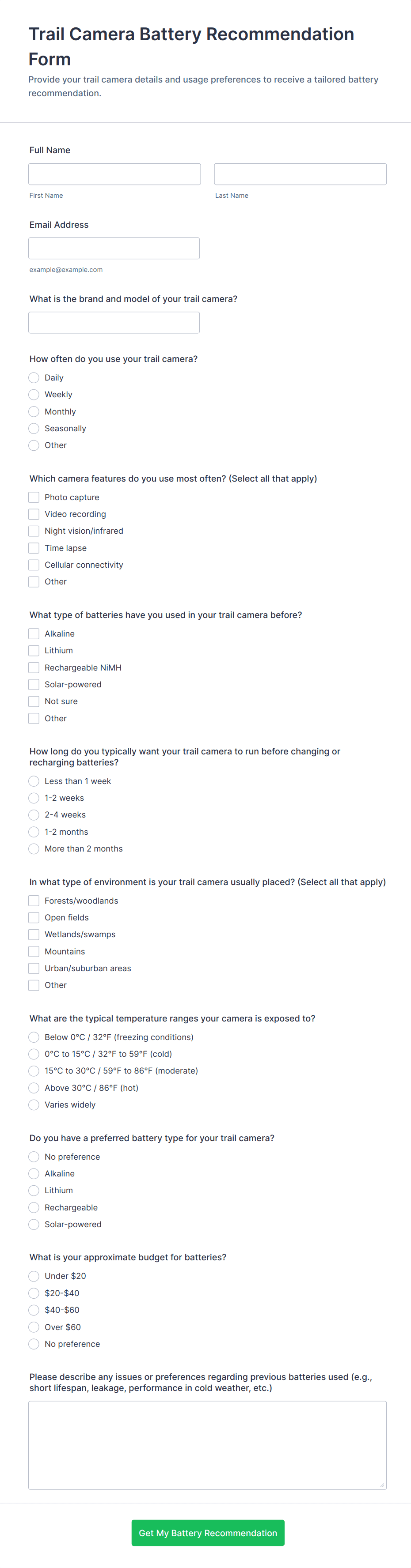 • Use conditional logic to show or hide fields based on previous answers, ensuring a streamlined experience.