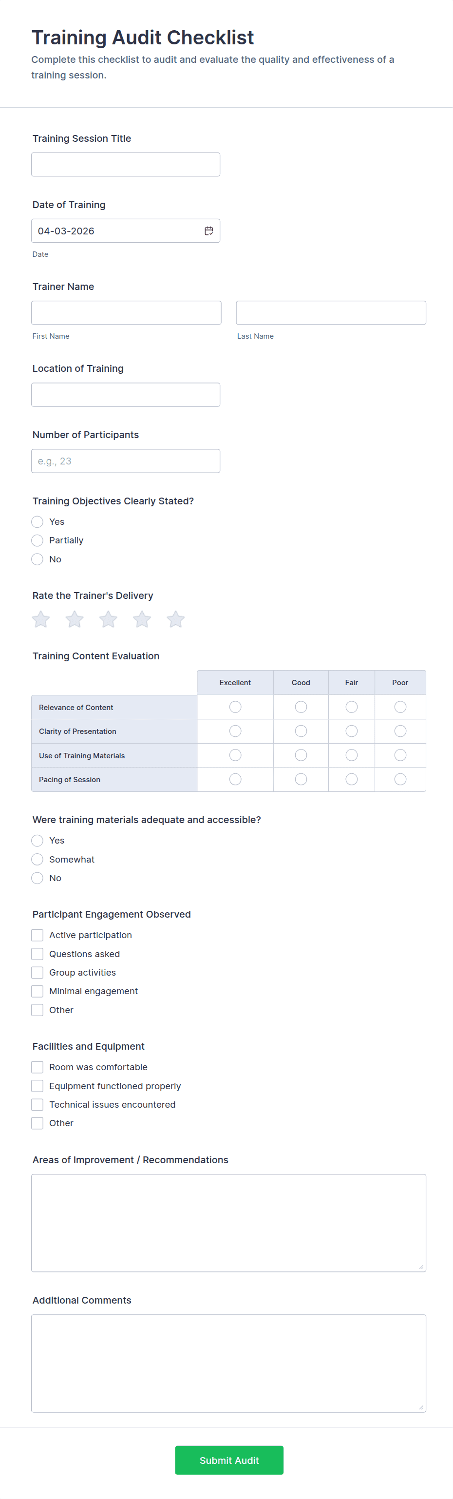 - Trainer Evaluation Forms: Gather feedback on trainer performance and session delivery.