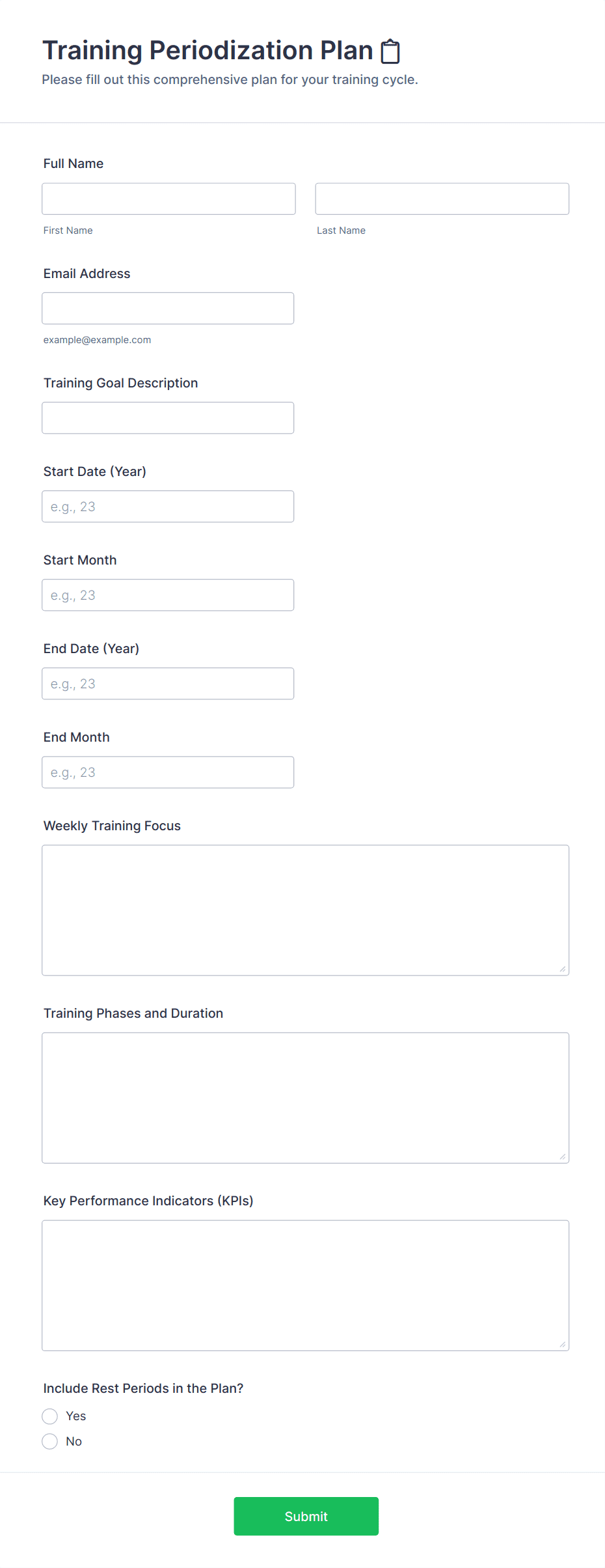 Rate of Perceived Exertion (RPE) Training Log Form helps coaches and athletes track workouts and perceived intensity in one place, supporting consistent training documentation and better session reviews with Jotform.