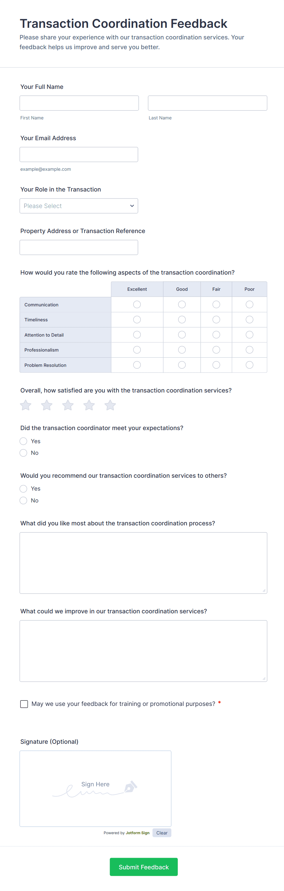 Real estate agents, brokers, property managers, landlords, leasing offices, and real estate agencies can all benefit from using feedback forms.