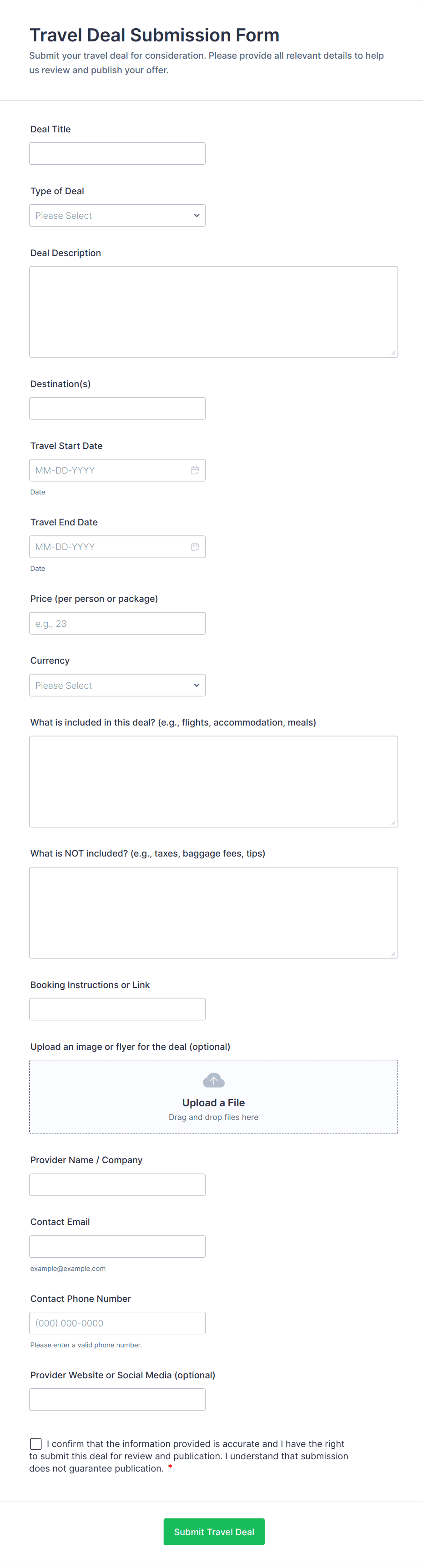 Travel Agency Booking Form Template