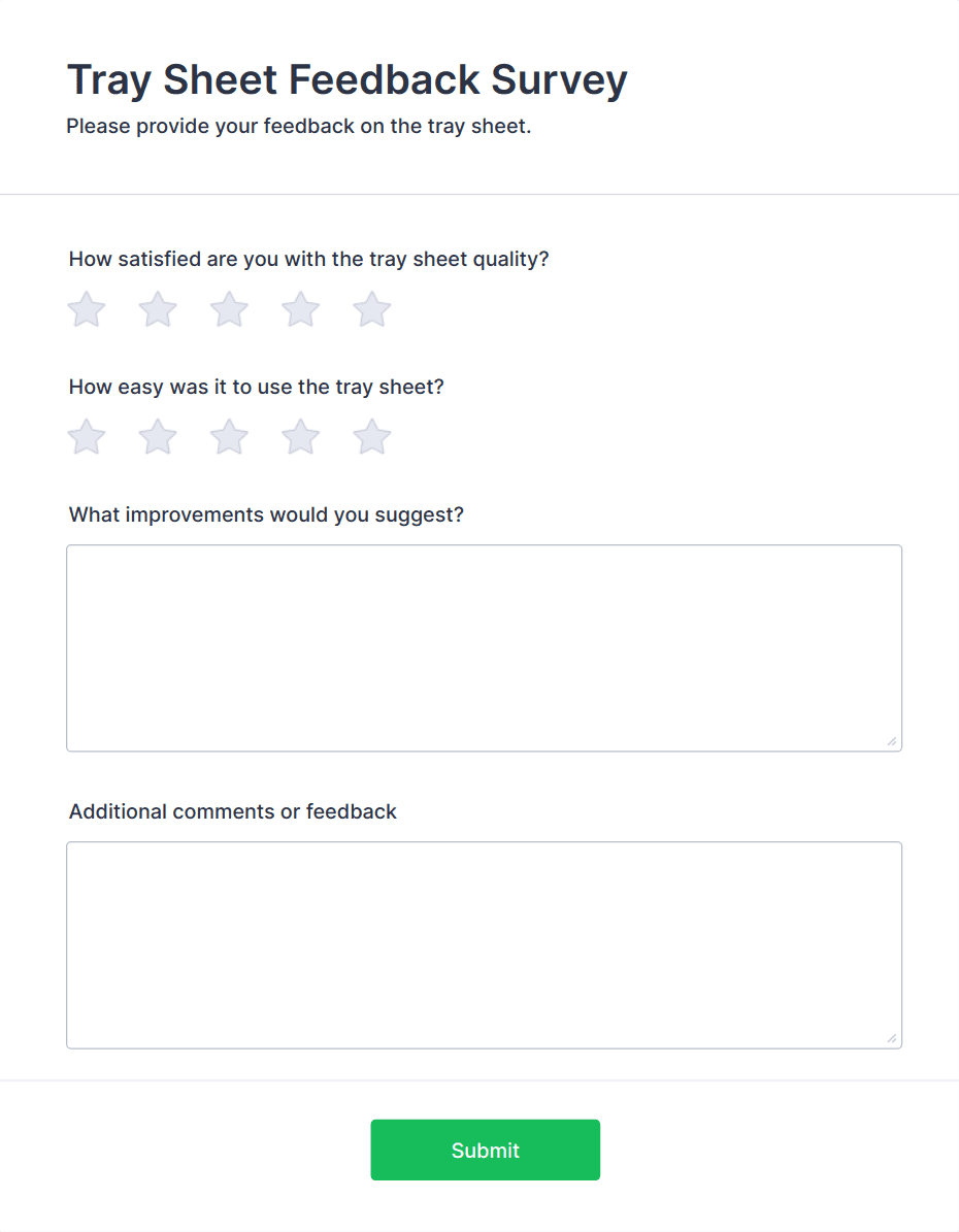 Survey templates are pre-designed forms that help individuals and organizations collect feedback, opinions, or data from a target audience. These templates are widely used for a variety of purposes, such as customer satisfaction surveys, employee engagement assessments, market research, event feedback, and academic studies. By providing a structured set of questions, survey templates streamline the process of gathering valuable insights, making it easier to analyze trends, measure satisfaction, and make informed decisions. Whether you’re a business owner, HR professional, educator, or researcher, survey templates offer a quick and effective way to reach your audience and collect actionable information.