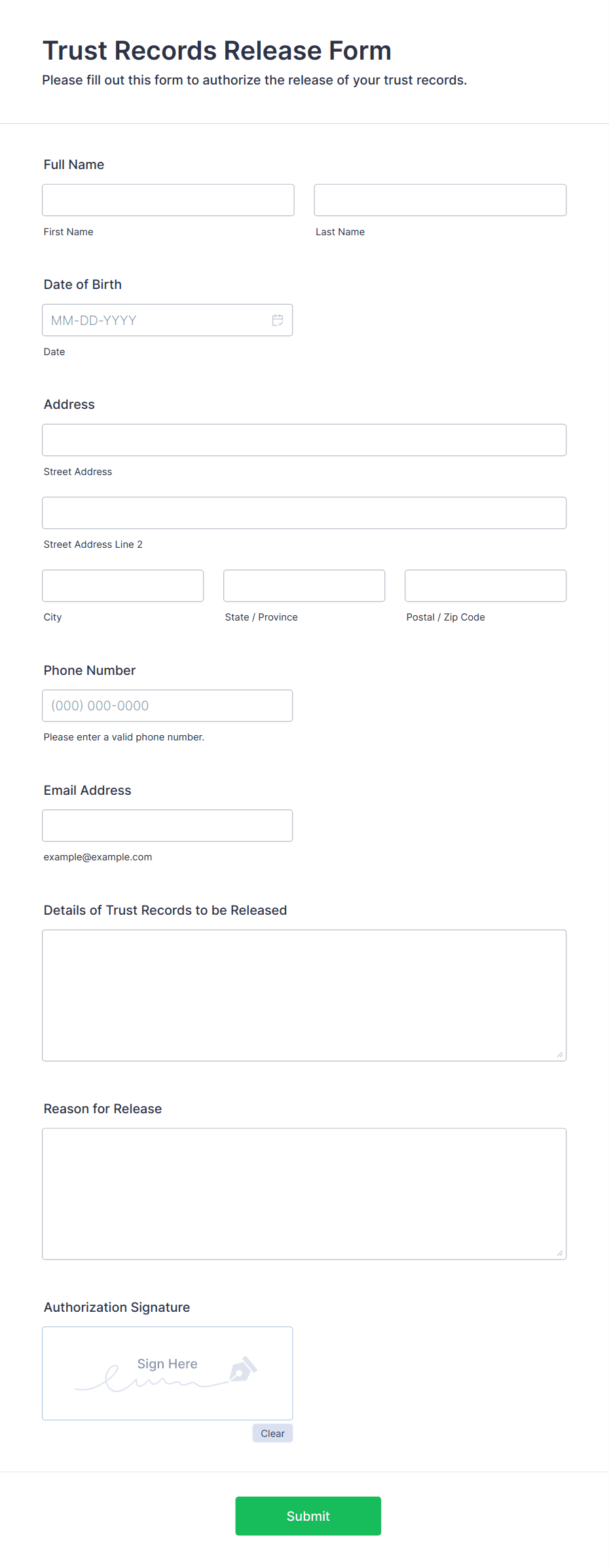 • Medical consent forms may require detailed information about procedures, risks, and emergency contacts.