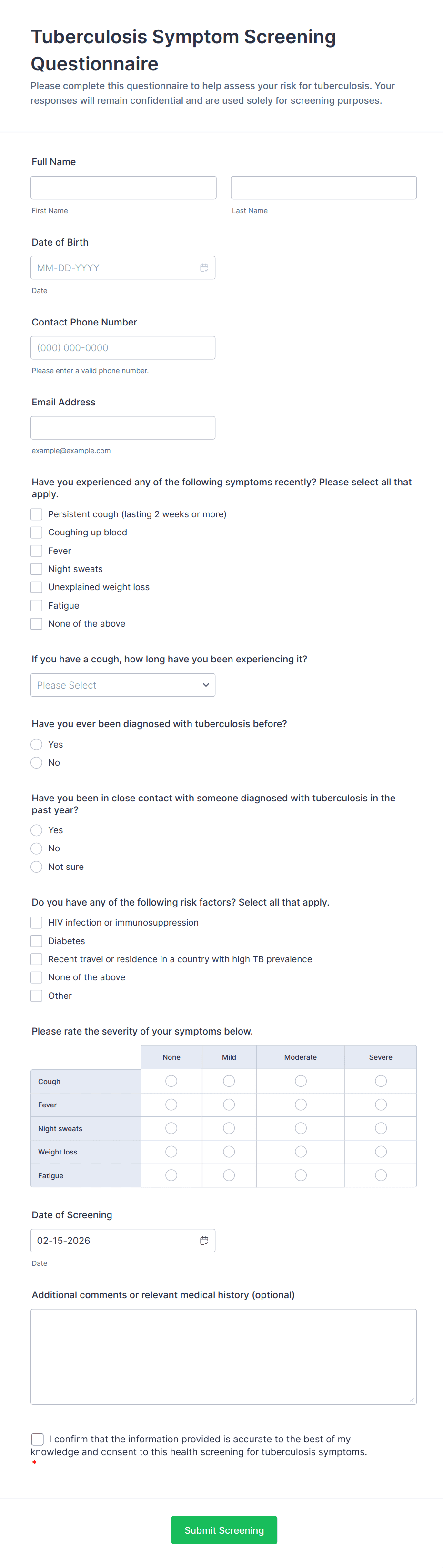• For mental health screenings, use rating scales or validated questionnaires (e.g., PHQ-9) and set up conditional logic for sensitive responses.