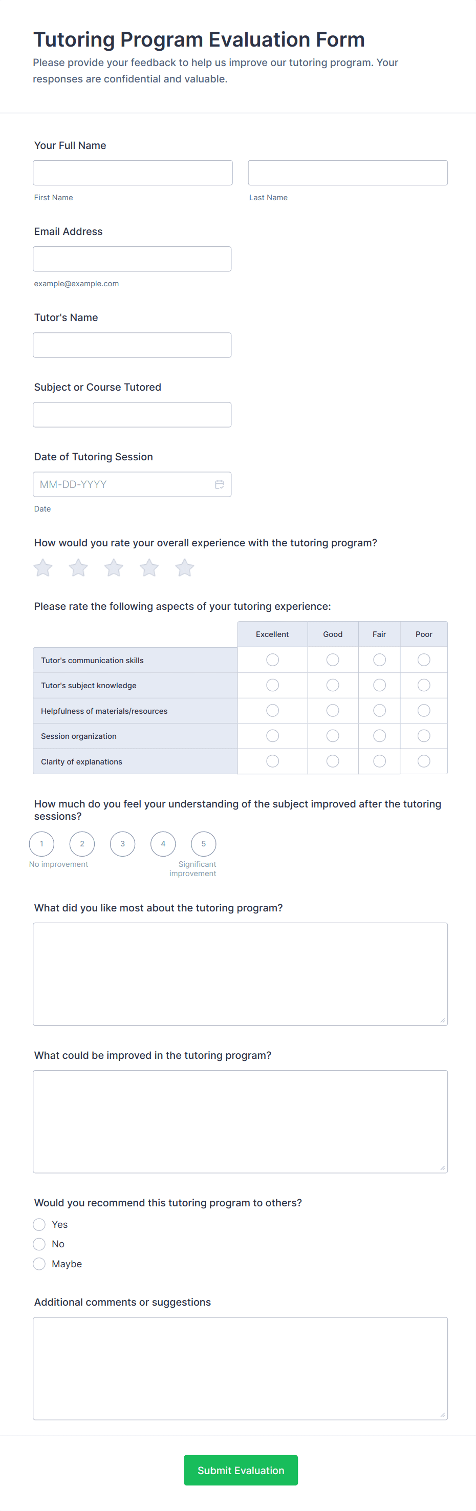 • For teacher or staff surveys: Include self-assessment fields, peer review sections, and narrative response options.