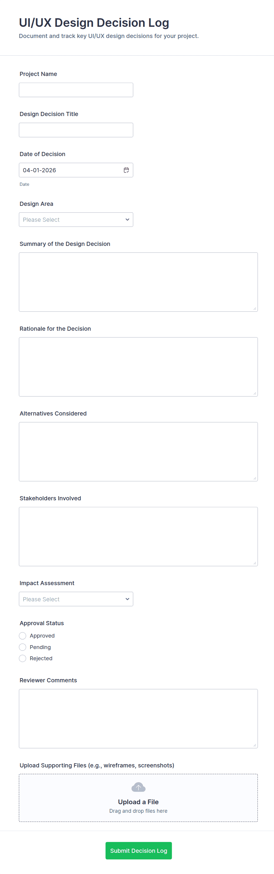 A web design form is an online form used by web designers and agencies to collect information from clients, manage project requests, gather feedback, or handle support inquiries related to website projects.