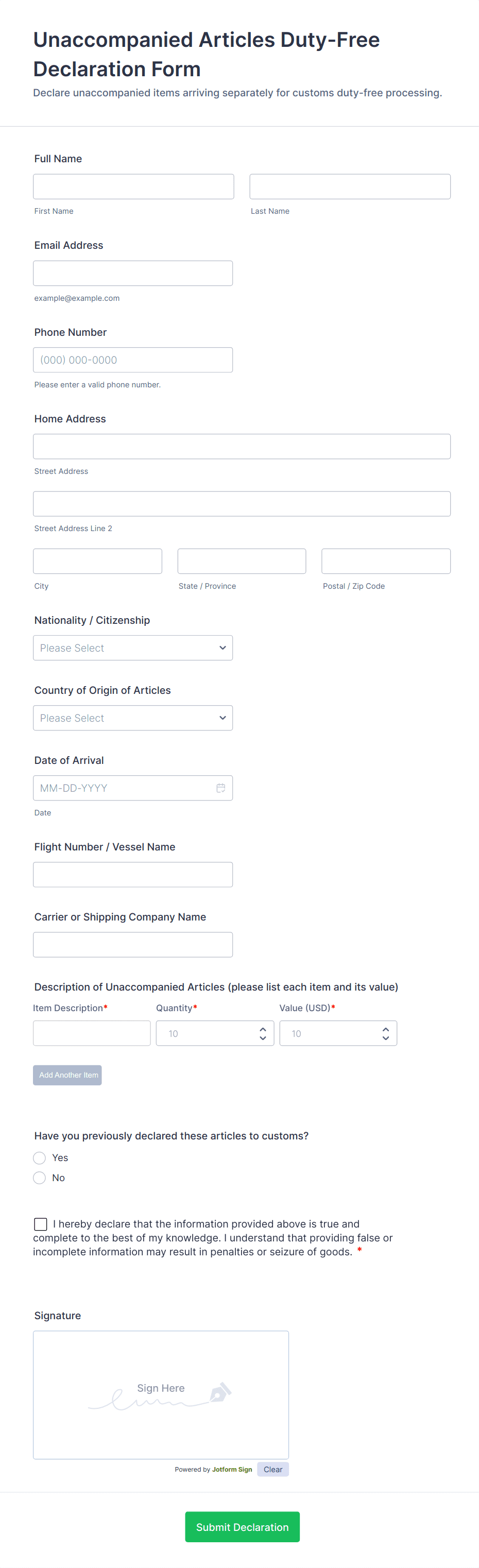 Shipping Declaration Form