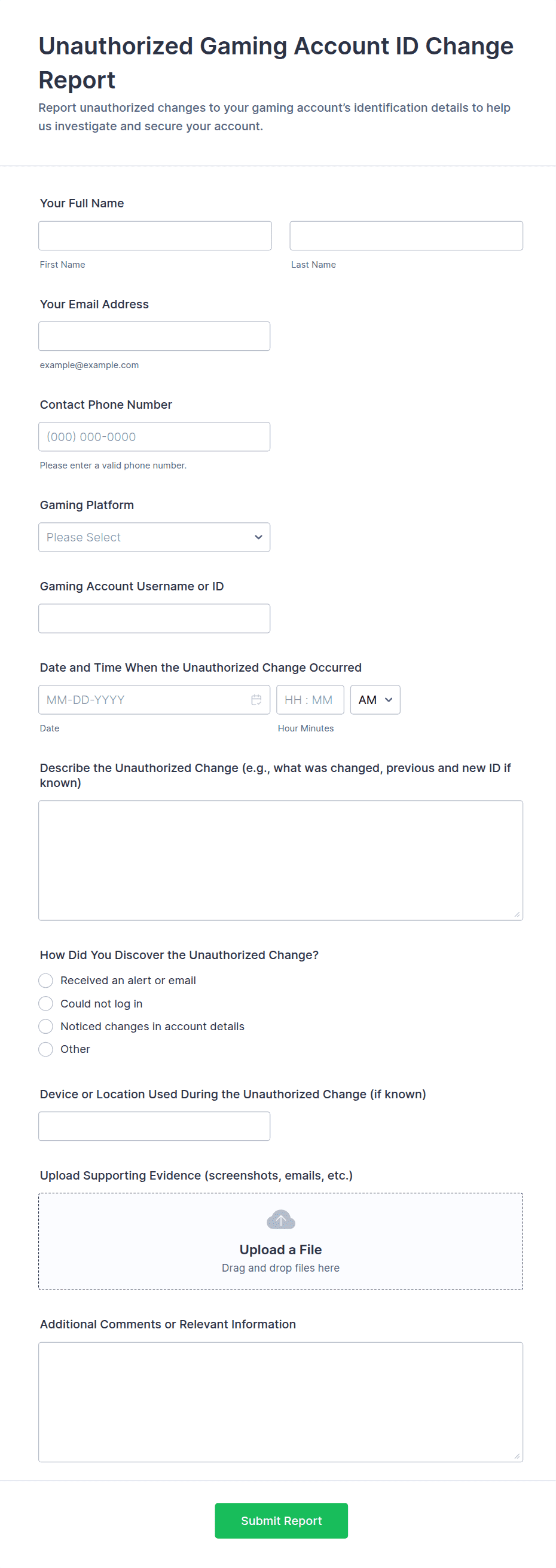 A gaming form template is a pre-designed online form used to collect information related to gaming activities, such as tournament registrations, feedback, event RSVPs, or beta tester applications.