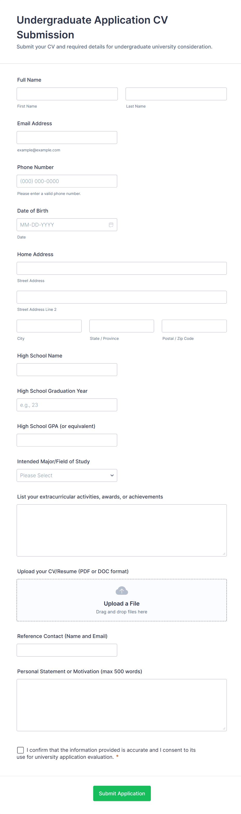 University Application Form