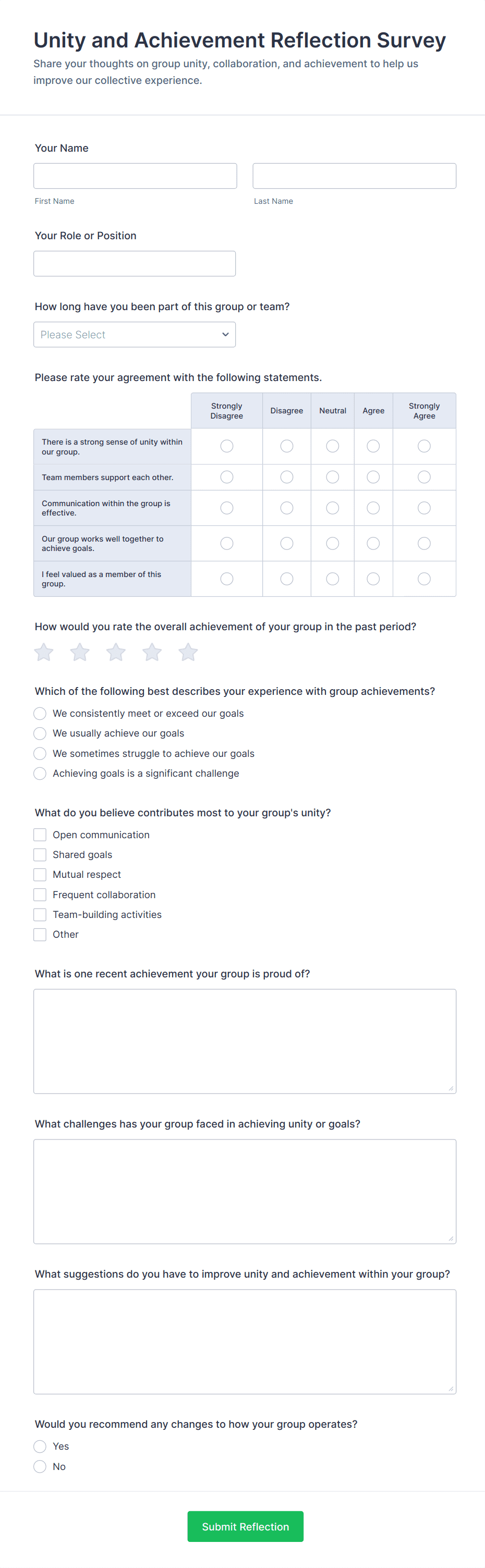 - For employee surveys, include questions on job satisfaction, leadership, and work environment.