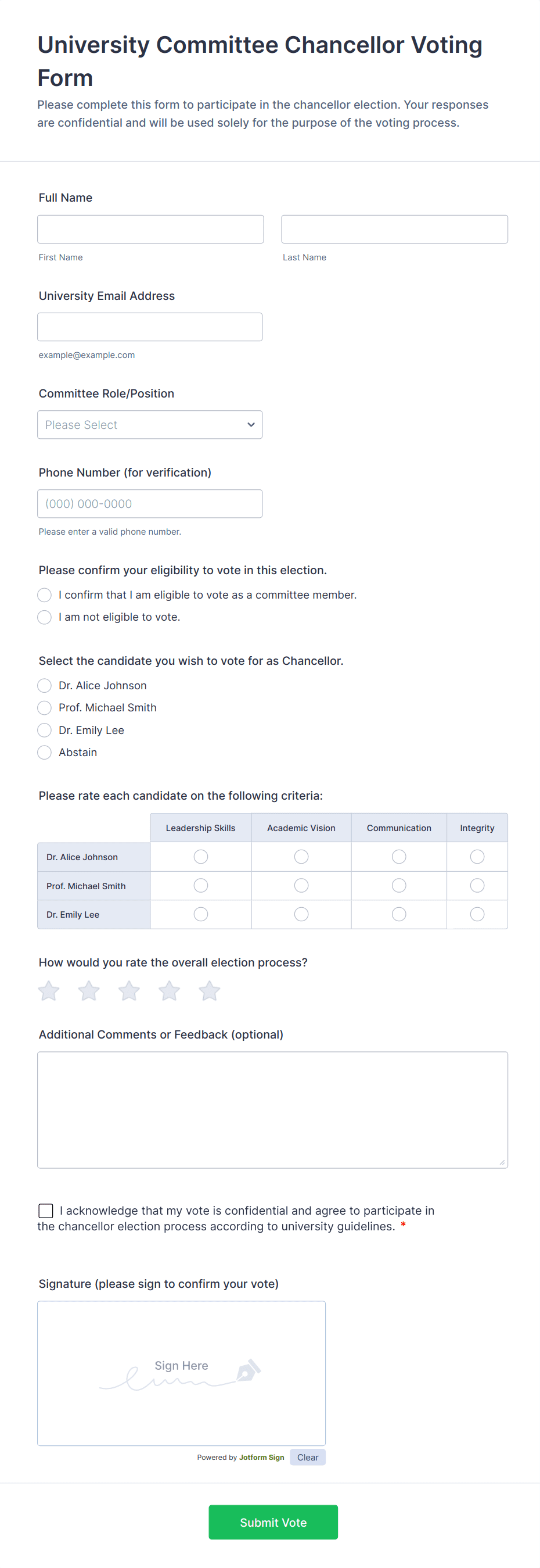 Voting forms are used by schools, businesses, clubs, nonprofits, event organizers, and any group needing to make collective decisions or gather opinions.
