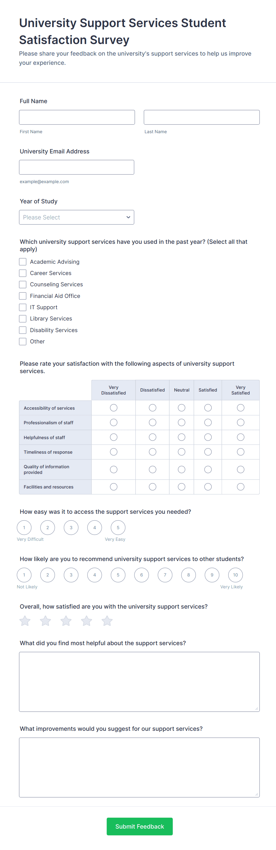 - For teacher or staff surveys: Include self-assessment fields, peer review sections, and narrative response options.