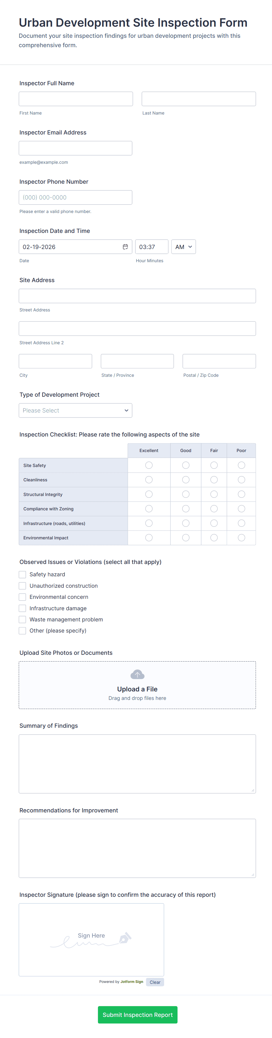 - For construction inspections, add fields for equipment status, safety compliance checklists, and supervisor sign-off.
