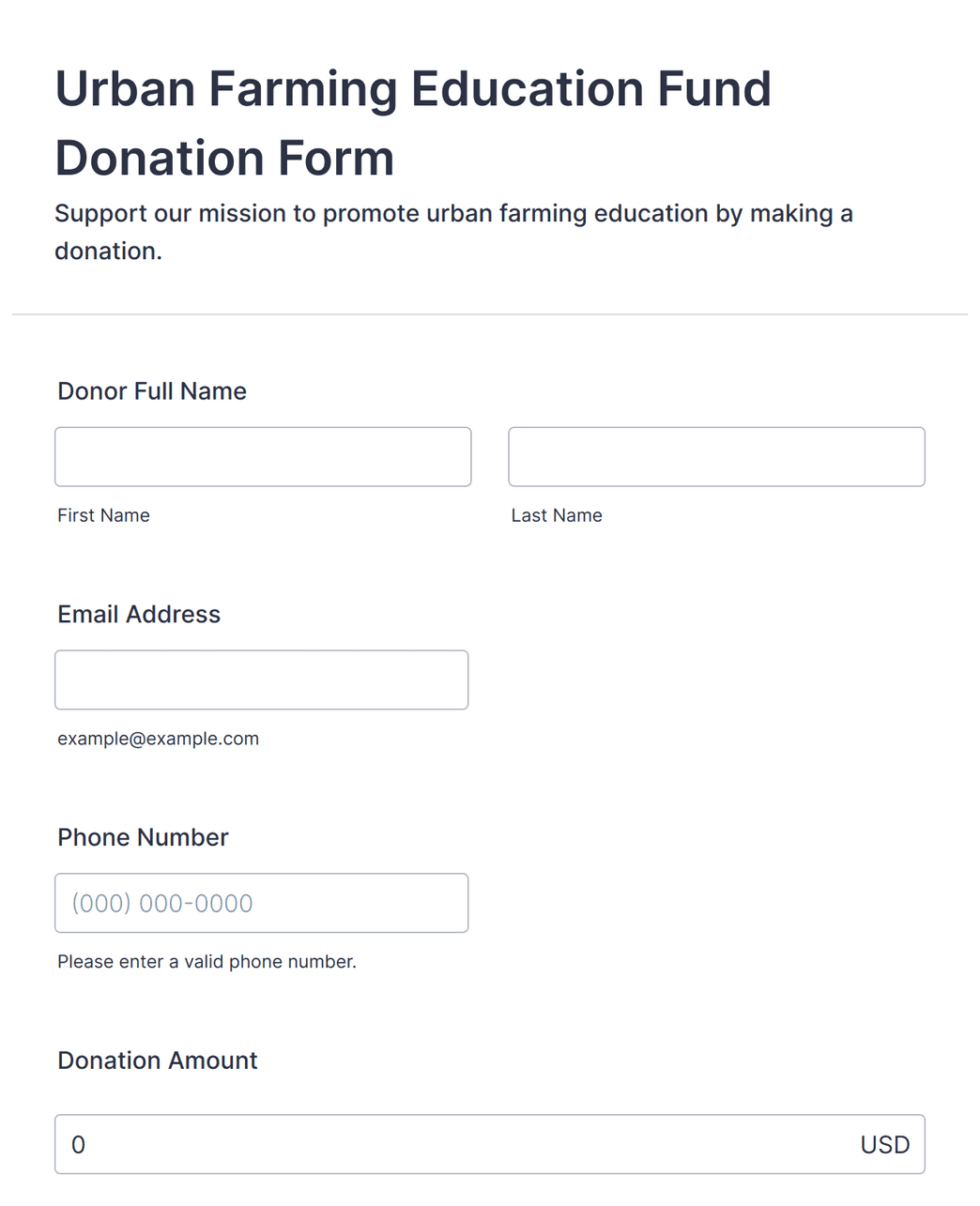 Donation forms are specialized online forms designed to collect contributions for charitable organizations, fundraising campaigns, nonprofit initiatives, and community projects. These forms streamline the process of gathering donor information, processing payments, and tracking contributions, making it easier for organizations to raise funds efficiently. Donation forms can be used for a variety of purposes, such as one-time or recurring donations, event sponsorships, crowdfunding efforts, membership drives, and emergency relief campaigns. They are essential tools for nonprofits, schools, religious groups, and community organizations seeking to engage supporters and facilitate secure, convenient giving.