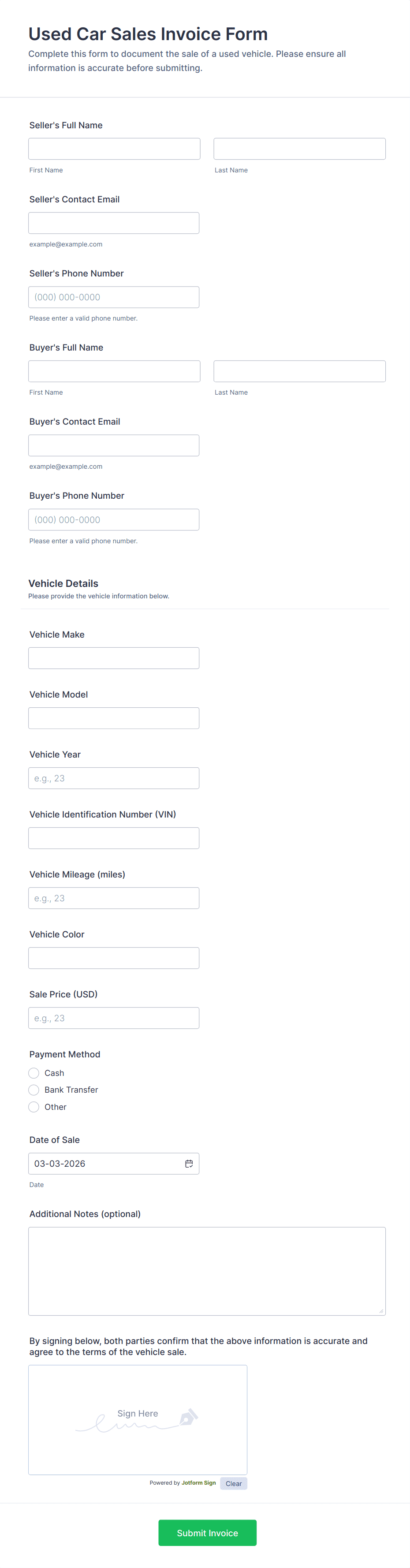 An automotive form is a digital document used by automotive businesses to collect, manage, and process information related to vehicles, customers, services, rentals, and more.
