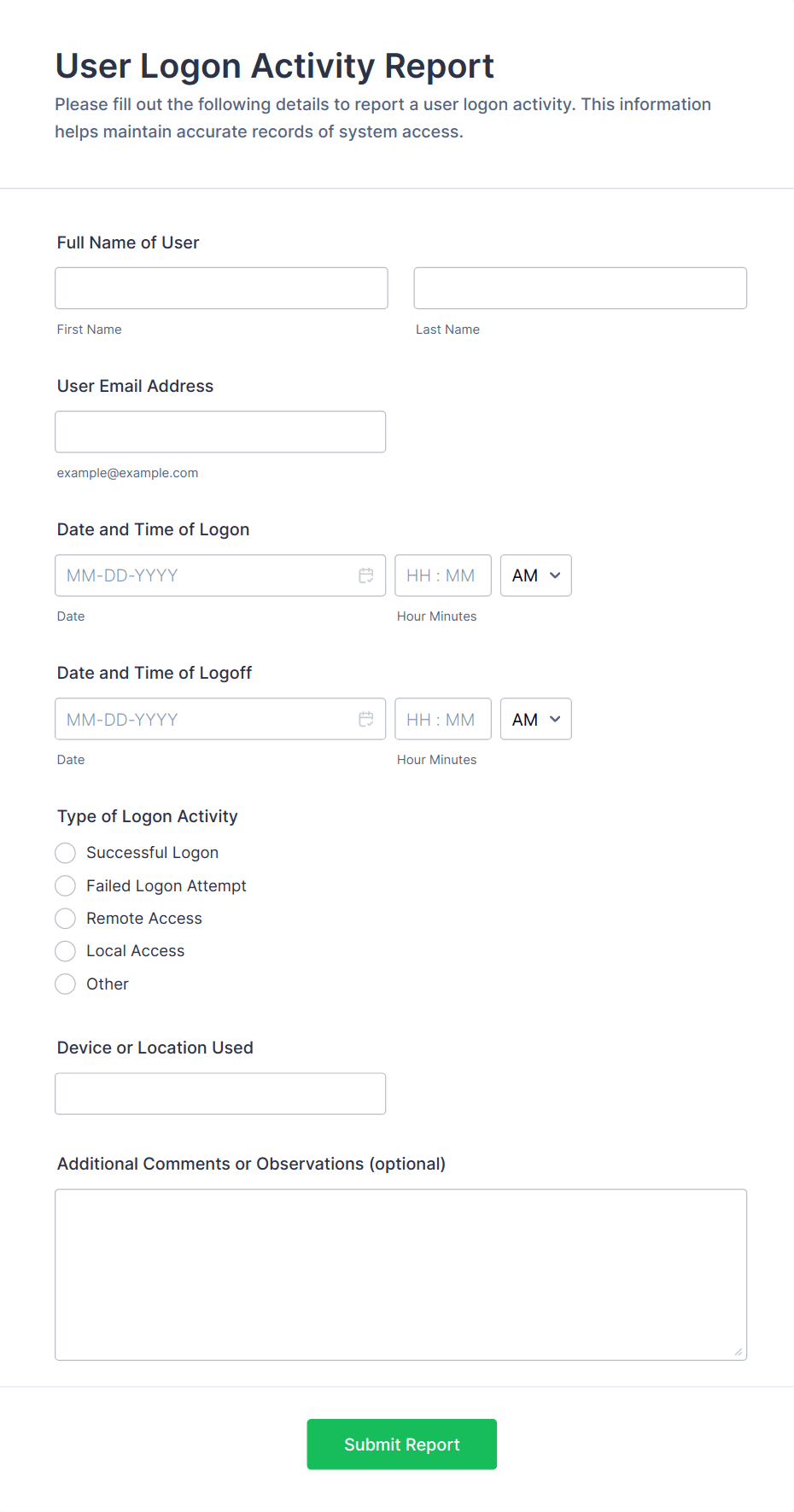 Remote Work Access Request Form is a customizable template for IT departments to collect employee details, approve remote access, and streamline secure remote work authorization.