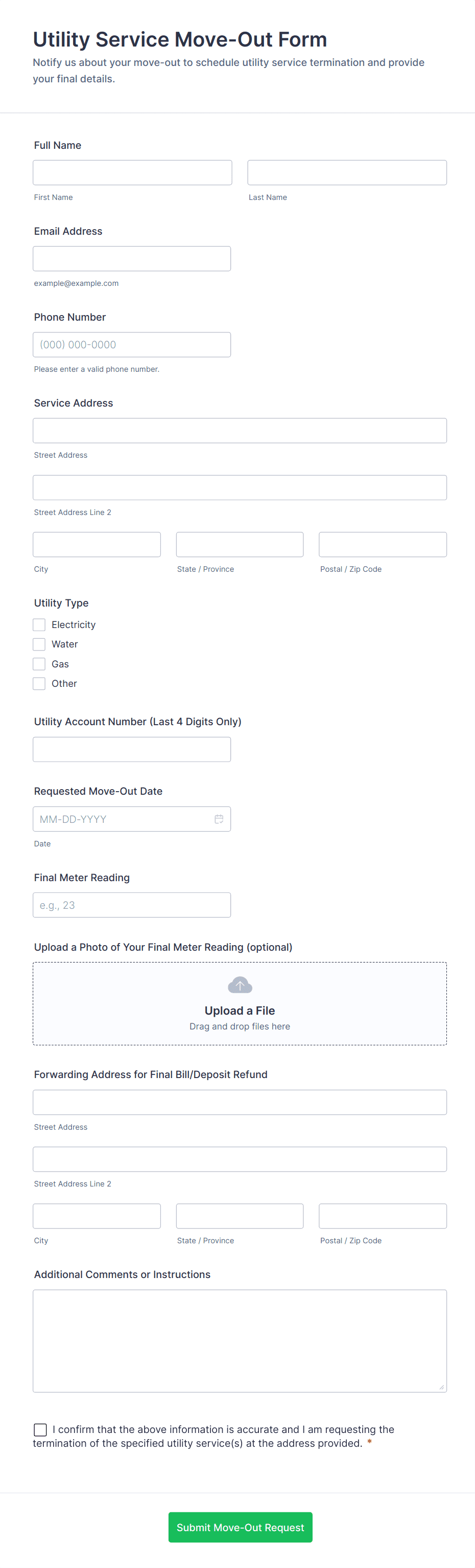 • Maintenance Requests: Include issue description, urgency, and photo upload options.