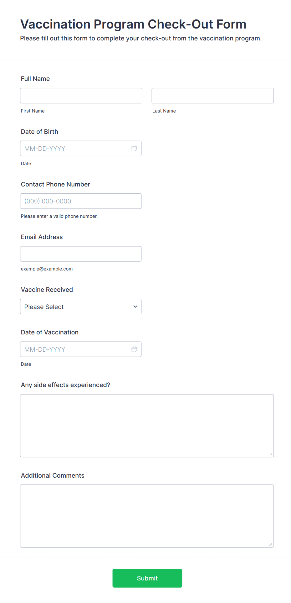 • Medical Appointments: May require fields for insurance information, reason for visit, and medical history.
