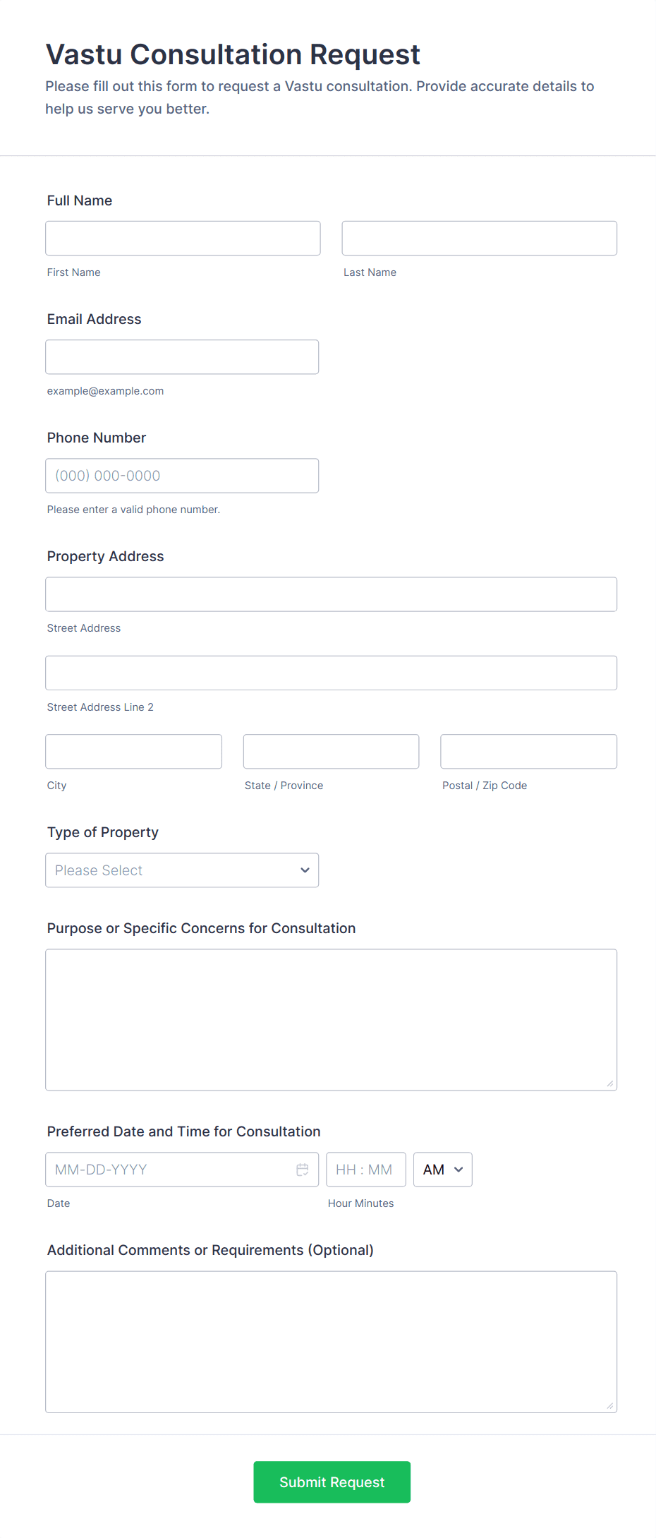 Consulting forms are specialized digital documents designed to streamline the information-gathering and communication processes between consultants and their clients. These forms can be used for a variety of purposes, such as client intake, needs assessments, project proposals, feedback collection, appointment scheduling, and progress tracking. Consulting forms help consultants efficiently collect essential details, clarify project scopes, set expectations, and document agreements, making them invaluable tools for independent consultants, consulting firms, and agencies across industries like business, IT, HR, marketing, and more.