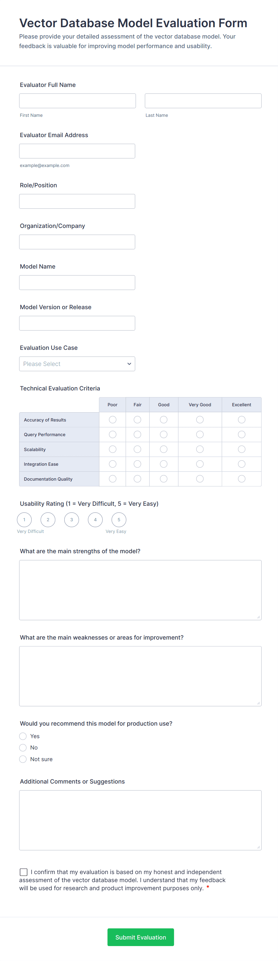 An evaluation form is a structured document or online tool used to collect feedback, assess performance, or measure satisfaction in various settings such as workplaces, schools, events, or customer interactions.