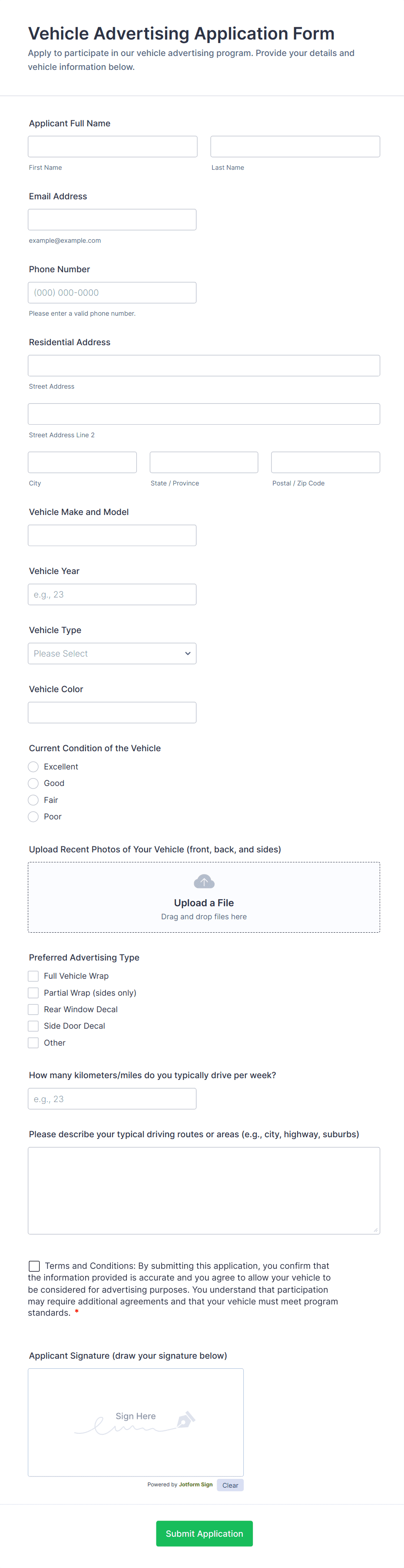 Advertising departments and agencies need to collect a wide variety of data, both internally and to expedite communications from clients. Browse advertising form templates that can help you more efficiently collect new client inquiries, project requirements, uploaded files, payments, signed contracts, and more! Streamline the communication flow across client teams, account teams, creative teams and more. Increase productivity and save time with Jotform’s fully customizable advertising form templates.