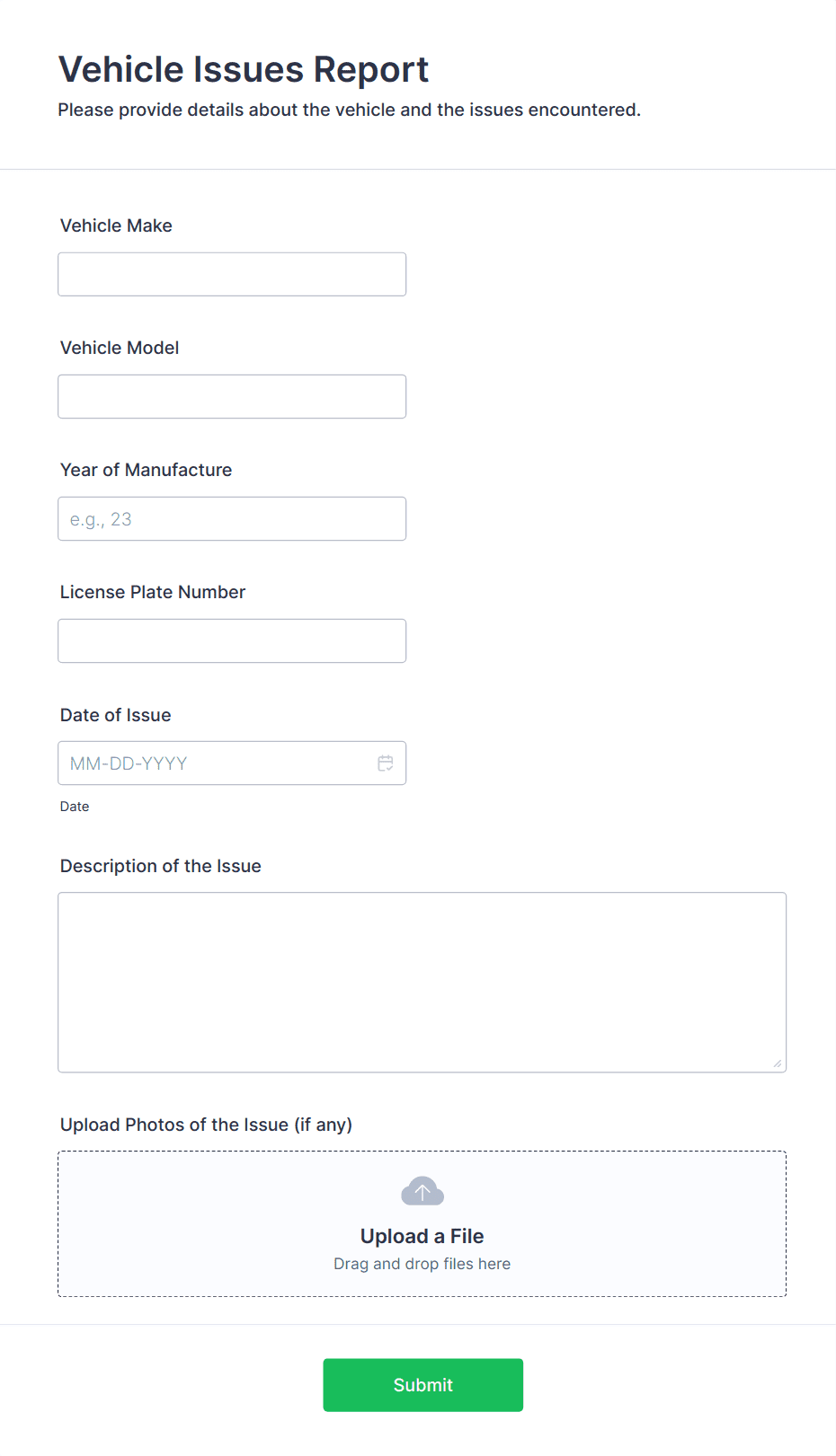 Manage vehicle repair bookings with a free Vehicle Service Request Form. View or manage responses on any device. Sync to 130+ apps or collect fees online!