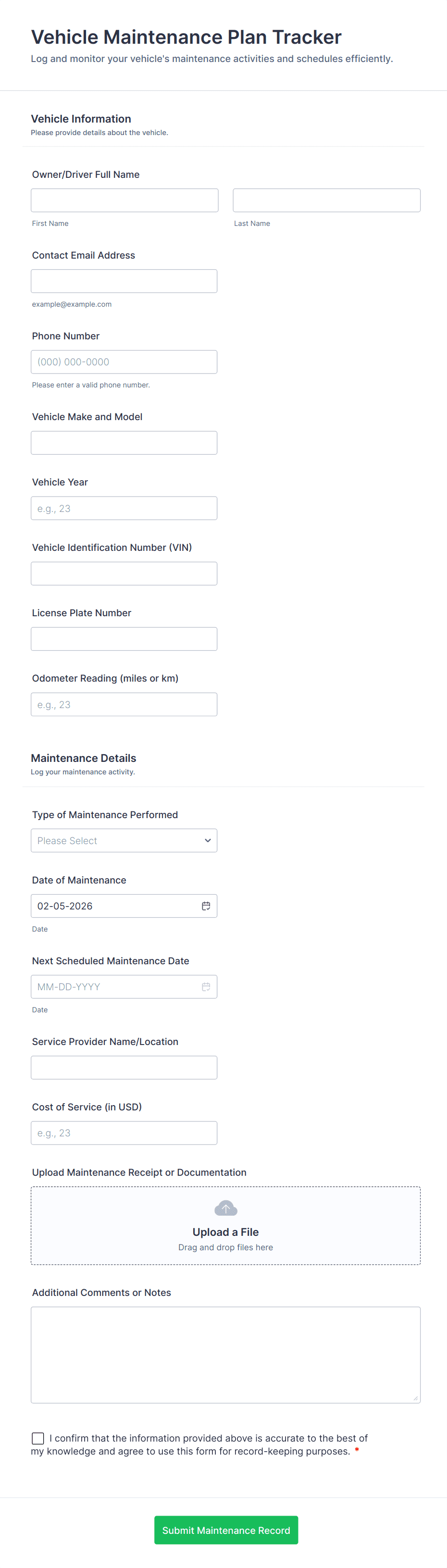 Manage vehicle repair bookings with a free Vehicle Service Request Form. View or manage responses on any device. Sync to 130+ apps or collect fees online!