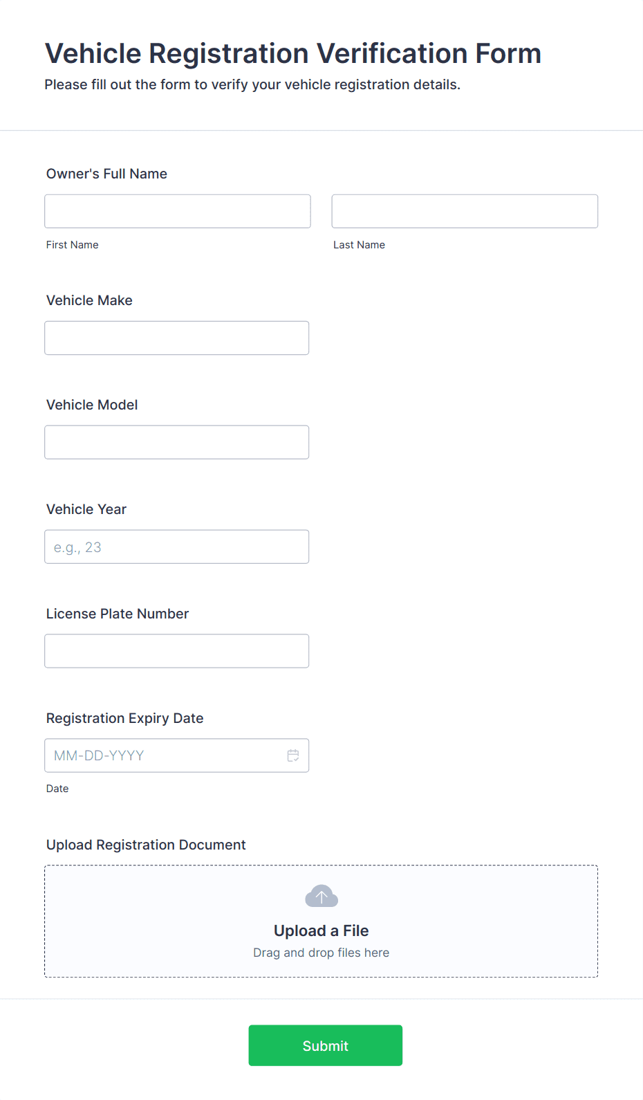 - For verification, include fields for uploading documents (e.g., ID, proof of address, certificates).