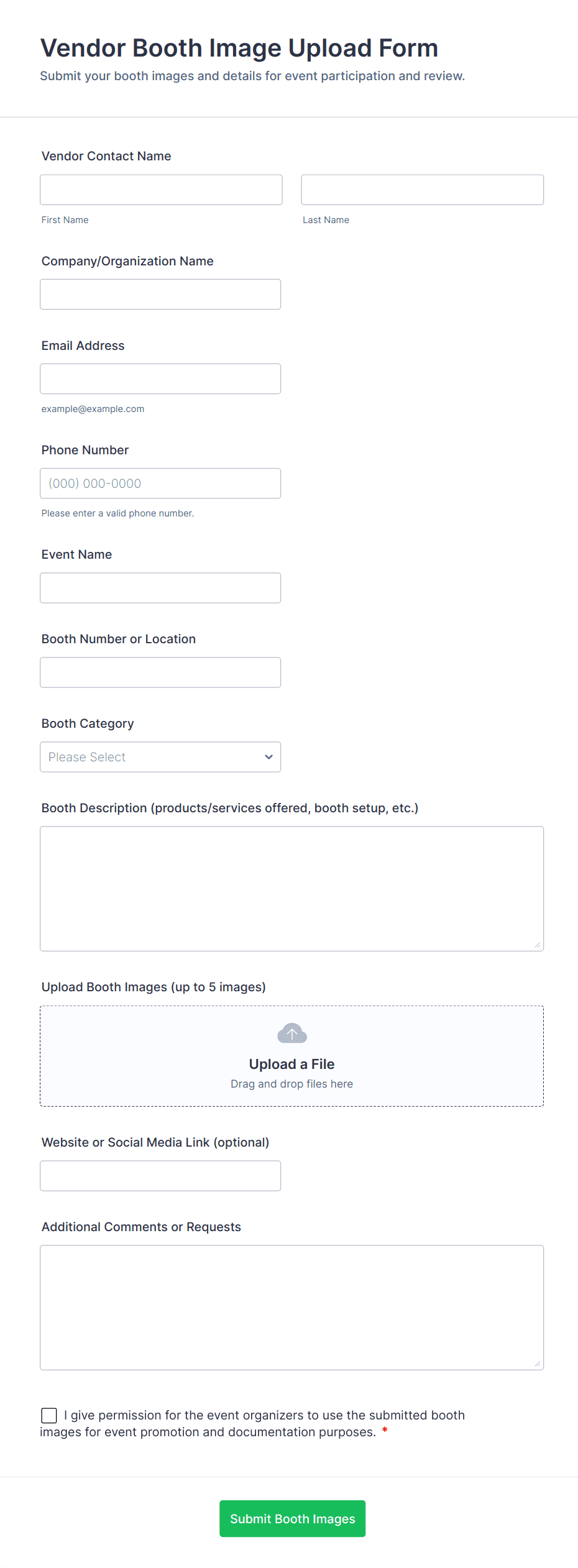 - Event Registrations: Gather ID proofs, consent forms, or vaccination certificates.