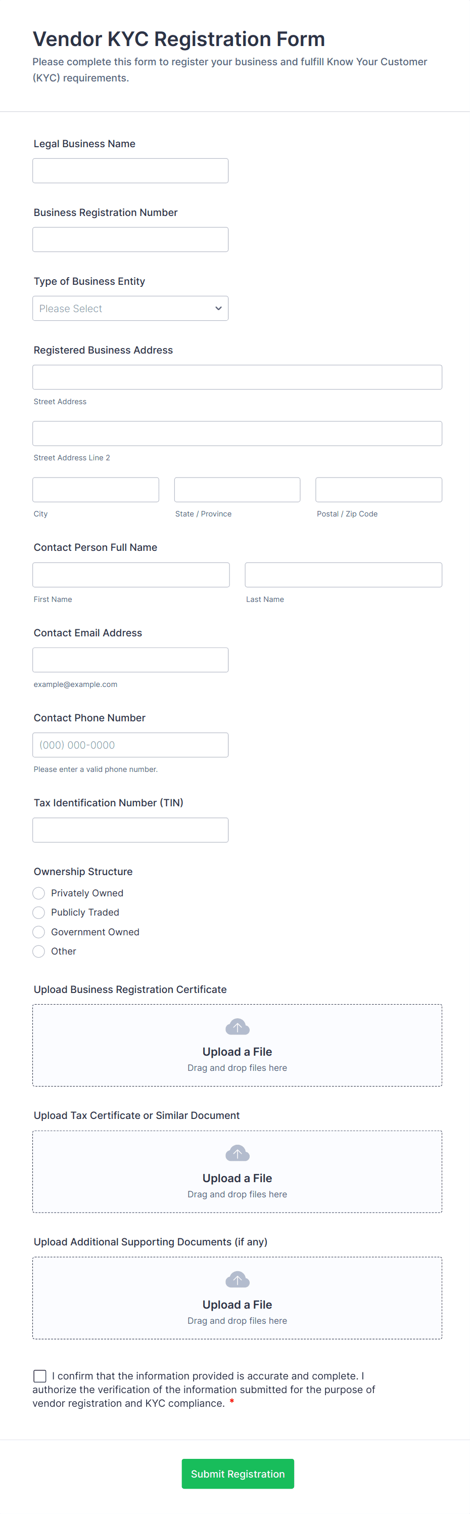 - Embed the form directly on your vendor registration page if needed.