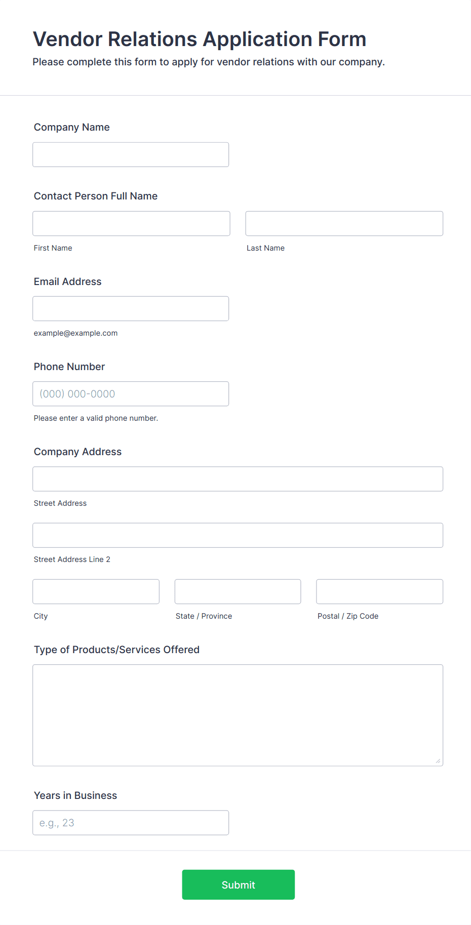 - Embed the form directly on your vendor registration page if needed.