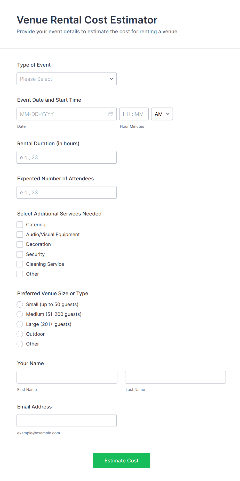 • Content and Fields: A concert booking form may require seat selection and payment integration, while a workshop sign-up might focus on participant details and session preferences. Private event RSVPs may include meal choices or guest information, whereas facility reservations could need date/time selectors and equipment checklists.