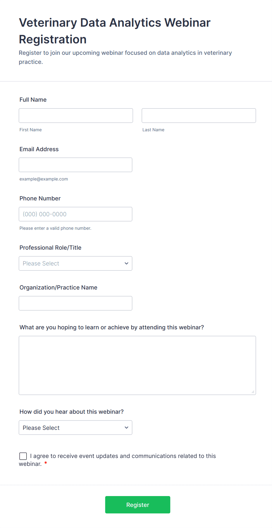 Virtual Webinar Registration Form