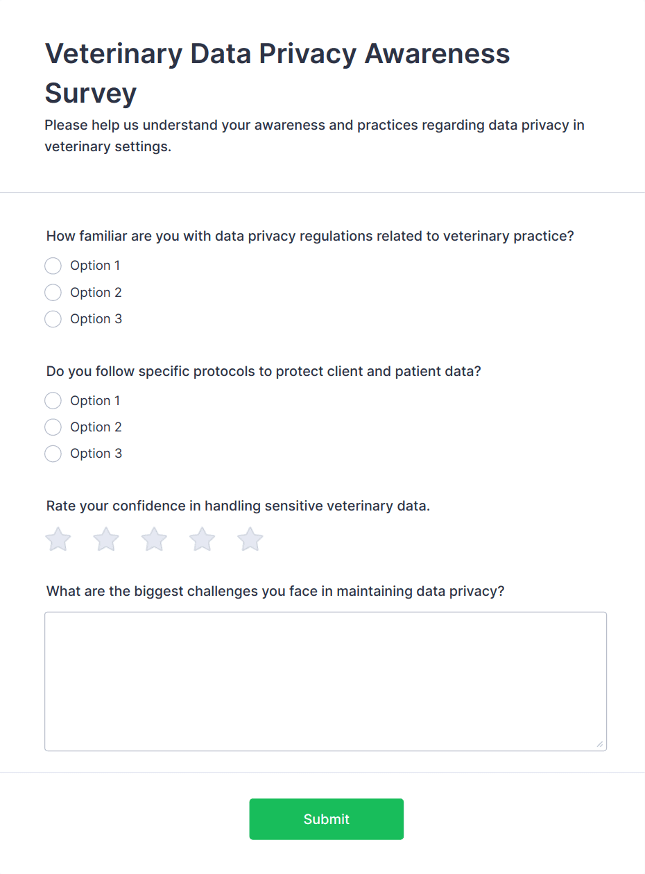 Veterinary Appointment Form Template helps clinics and animal care providers schedule pet visits and collect basic animal details online.