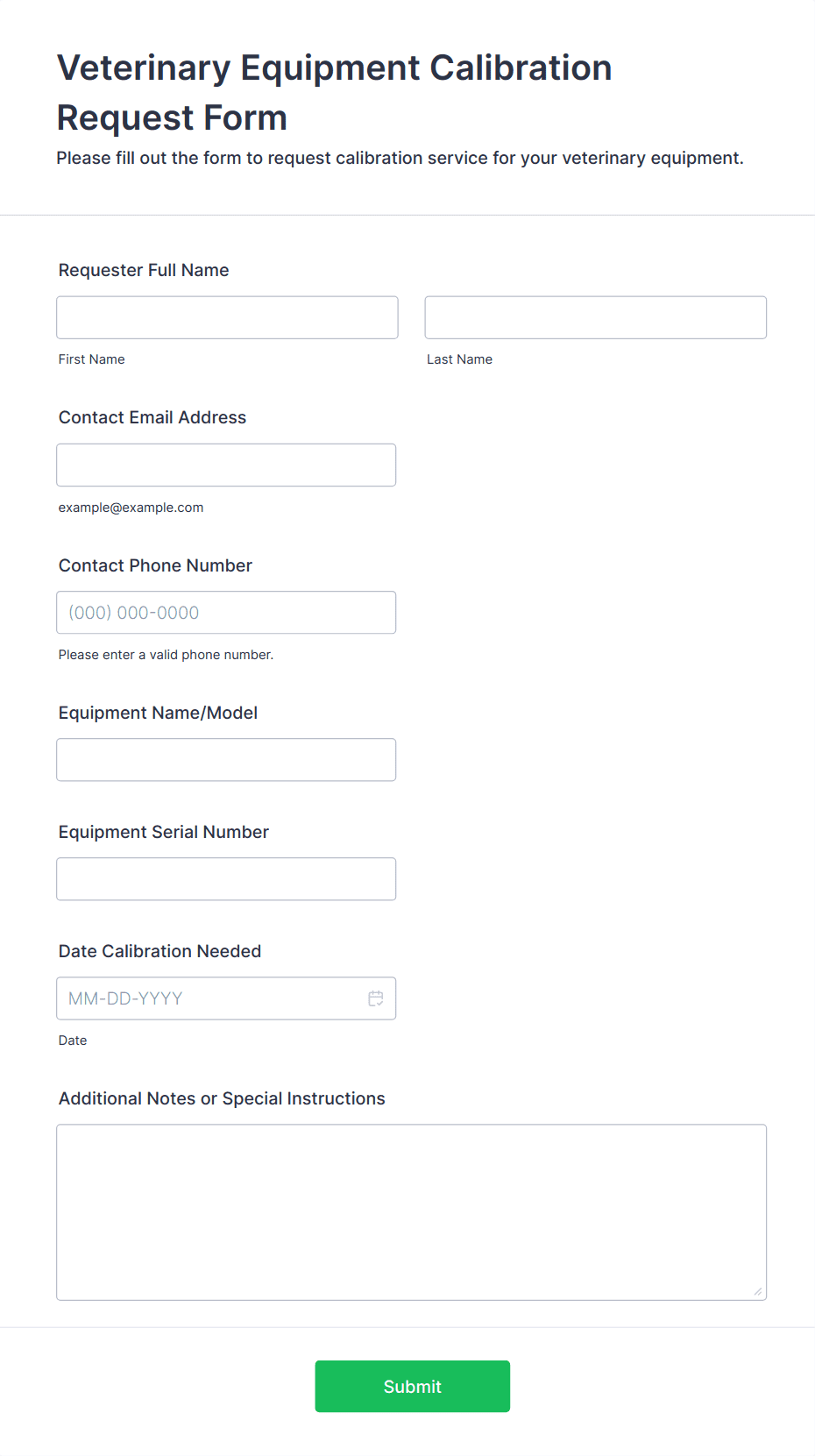 Receive pet prescription requests quickly and manage your prescriptions easily by using this veterinary prescription form.