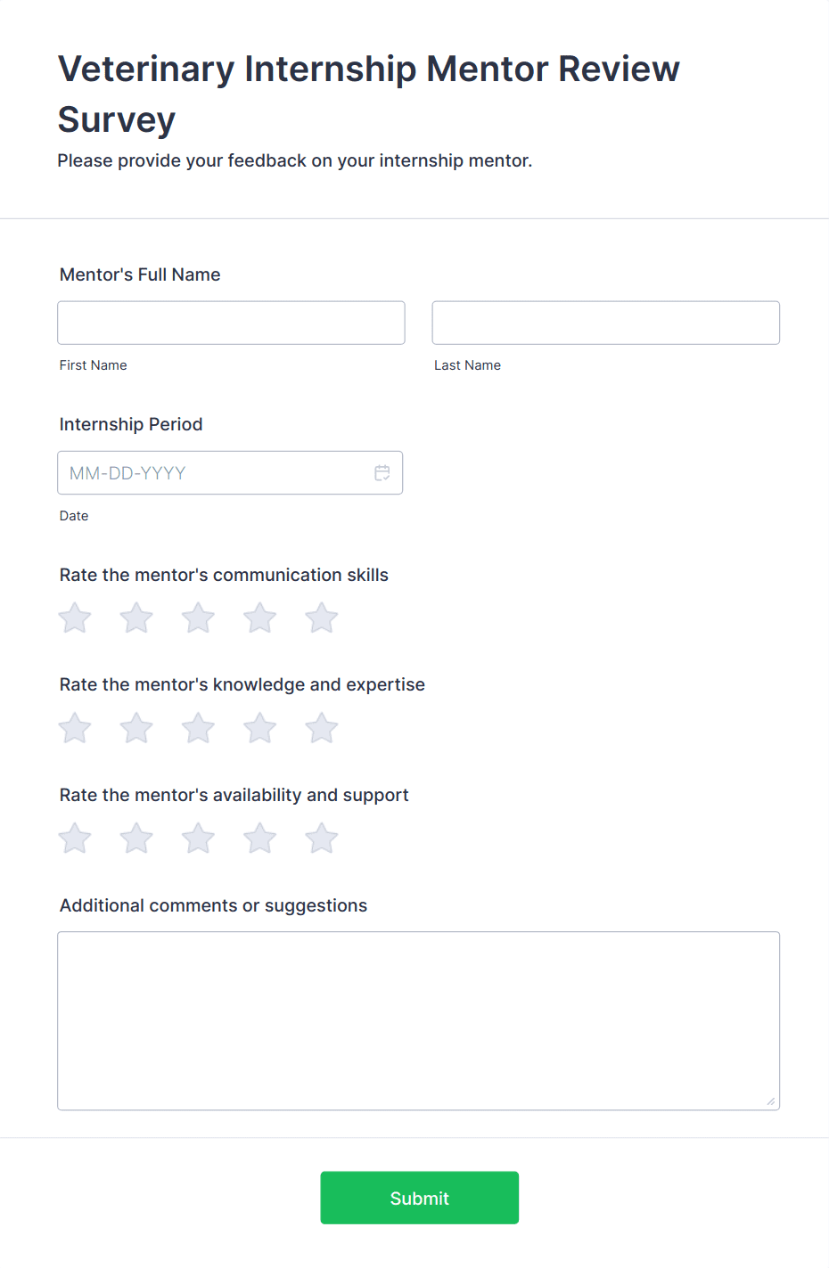 Veterinary Appointment Form Template helps clinics and animal care providers schedule pet visits and collect basic animal details online.