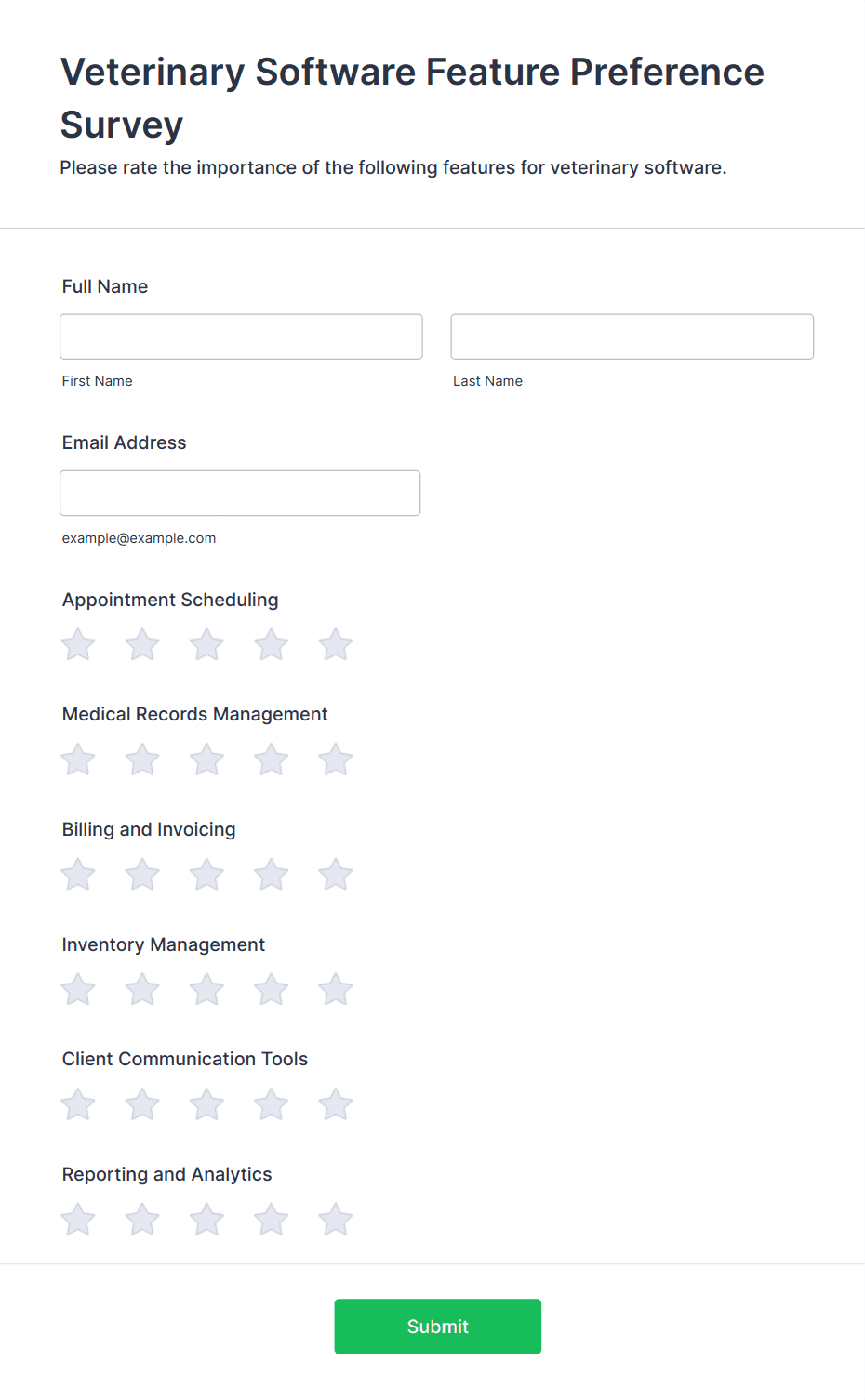 A Veterinary New Client Form is a form template designed to collect online client registrations for veterinary clinics.